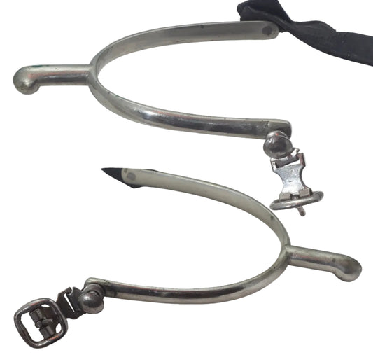 Vintage Nickel Hunting or Military Spurs with Buttons & Buckles - Spur601