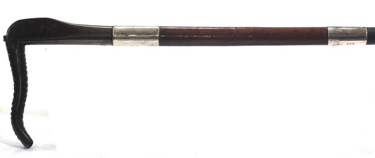 1899 Cane Hunting Whip or Crop with Silver Collar by Callow - w1681