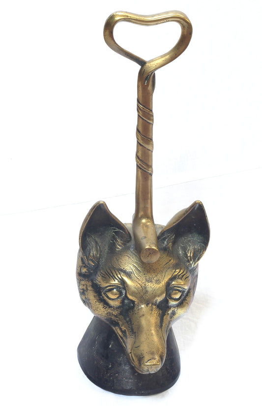 Antique Brass Fox Mask & Whip Door Stop or Porter