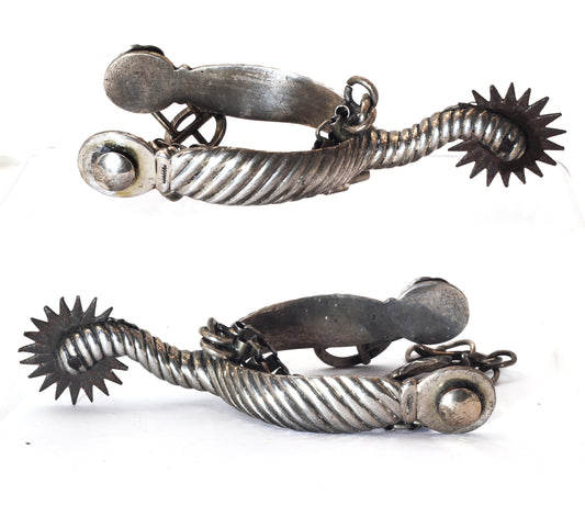 Pair of Antique Silver Spurs by Candido Silva - Spur345