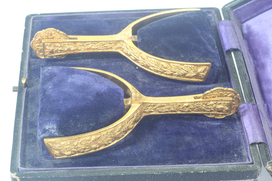 Pair of Antique Gilt Brass Swan Necked Mess Dress Box Spurs - Spur617