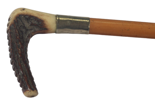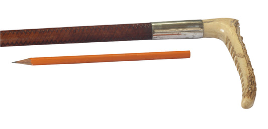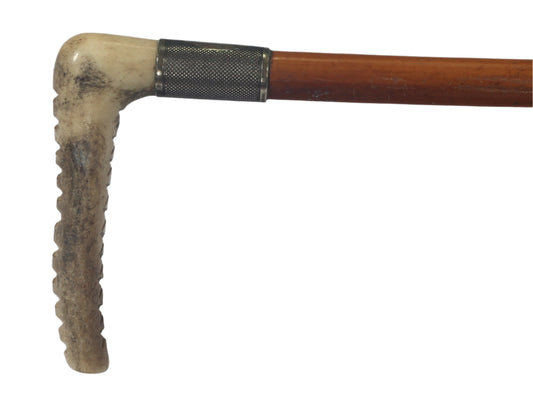 Antique 1894 Malacca Hunting Whip with Foliate Silver Collar - w1778