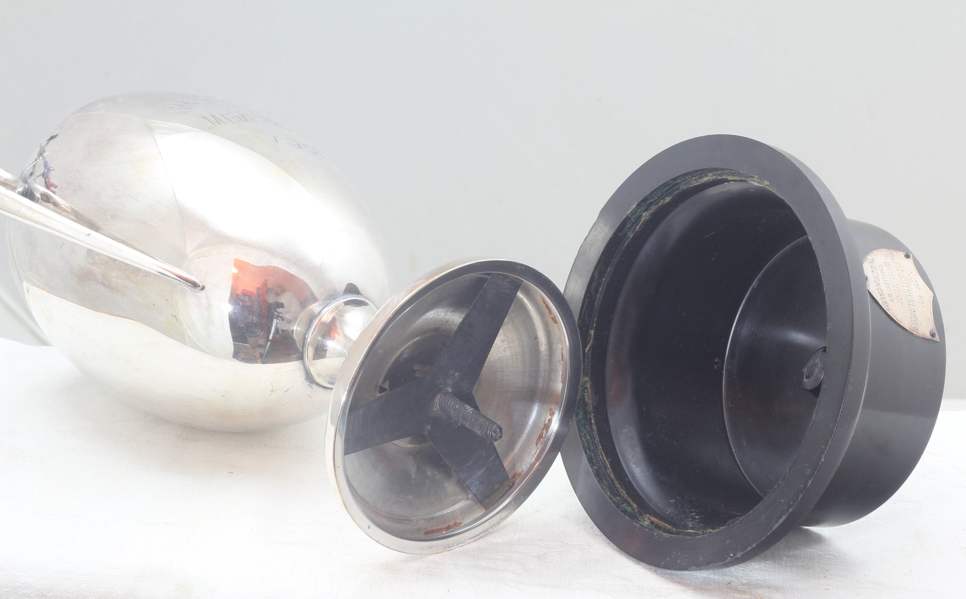 The base of the 1957 lacks its green felt base and the cup can be removed from it.