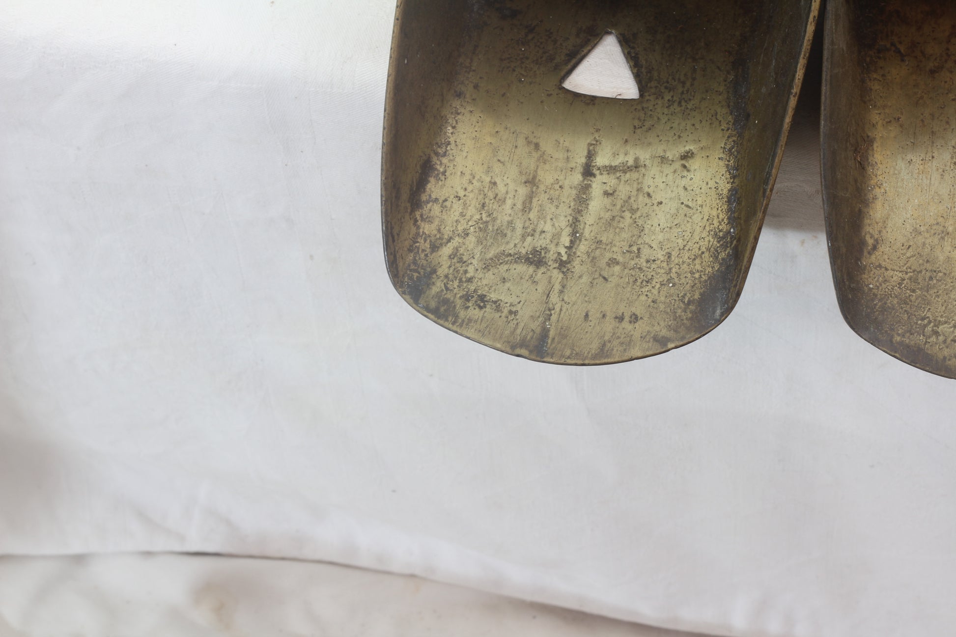 These shoe shaped stirrups are made of brass .
